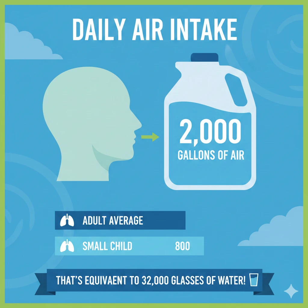 The health effects of particulate matter exposure (particularly PM2.5) can be huge: the average adult takes about 16 breaths per minute, or 960 breaths an hour - which comes to a grand total of 23,040 breaths each day. This is equivalent to approximately 2,000 gallons of air. We all know that consuming polluted water is a no-go… but imagine the health risks of breathing this much polluted air day in, day out!